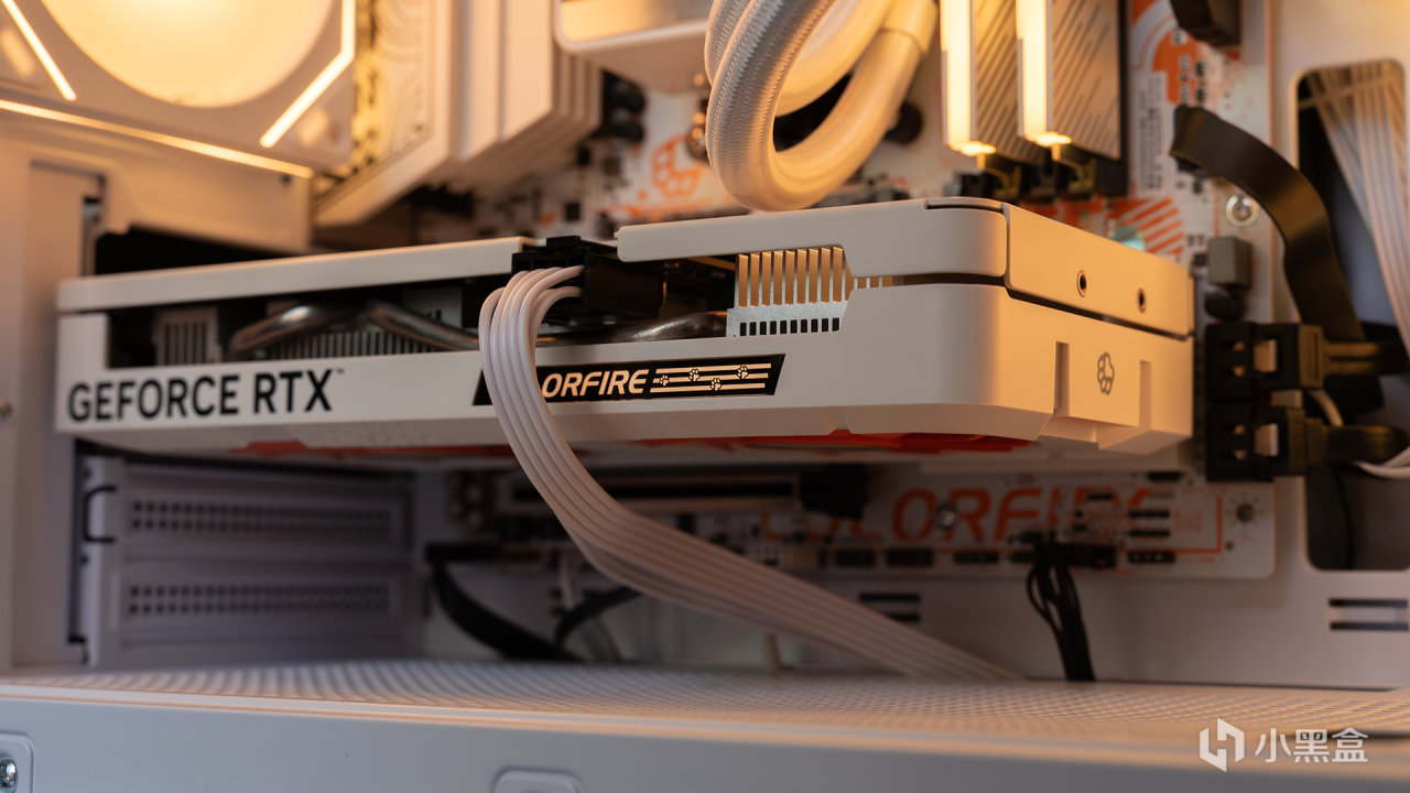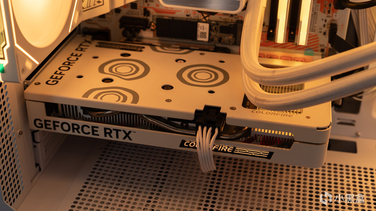 显卡灯效呈现CORFIRE LOGO,不过因为和供电线挨得近,视觉上会有些遮挡,不过这也没事因为尾部的猫爪印花并没有被遮挡,妹子主要就看重这个。