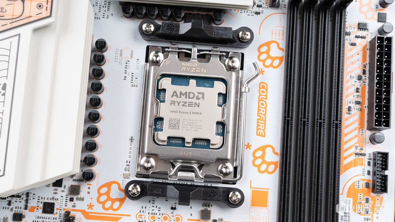 锐龙5 9600X+B650M-MEOW WIFI橘影橙安装特写