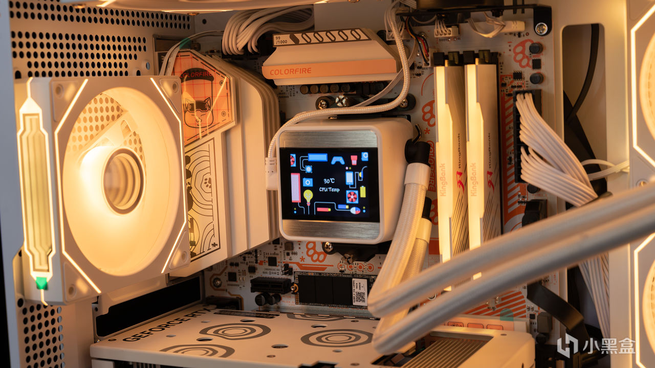 对于妹子的情绪价值,硬核思前想后,只有七彩虹的橘猫MEOW系列满足她,全家桶不需要强上,但机箱作为主机的外壳那必须得选MEOW,主板也可以选MEOW,为了和机箱联动增强主题感。散热器没有选,因为带屏水冷可以自定义上传更好的橘猫动态效果,而机箱风扇为了追求协调性也是选择和冷排扇近似外观的型号。