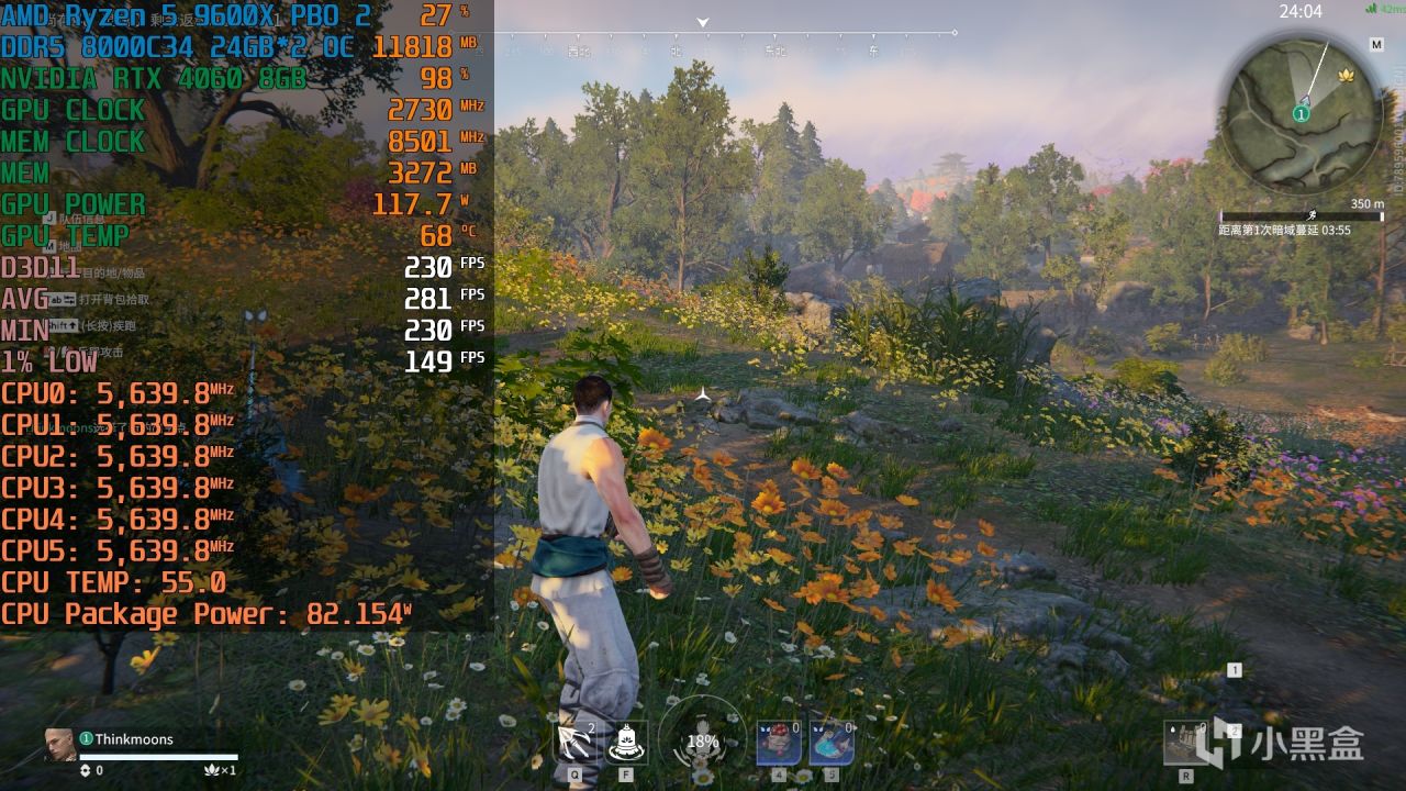 9600X PBO 2+DDR5 8000C34 24GB*2+RTX 4060 8GB,平均帧数281fps,1% LOW帧149fps