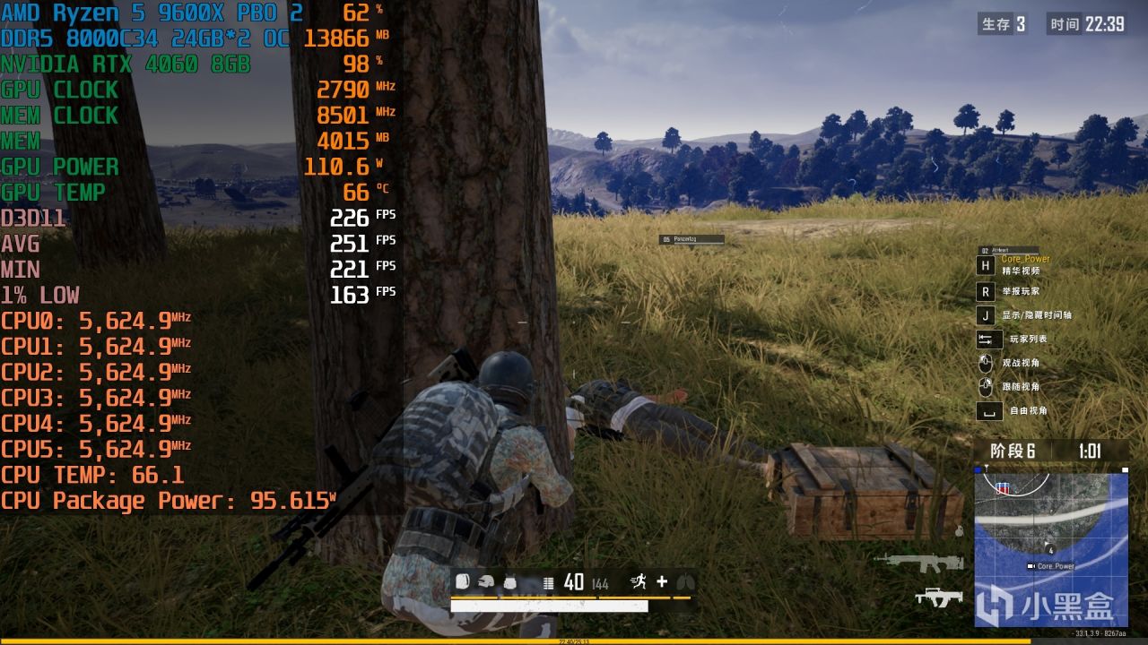 9600X PBO 2+DDR5 8000C34 24GB*2+RTX 4060 8GB,平均帧数251fps,1% LOW帧163fps
