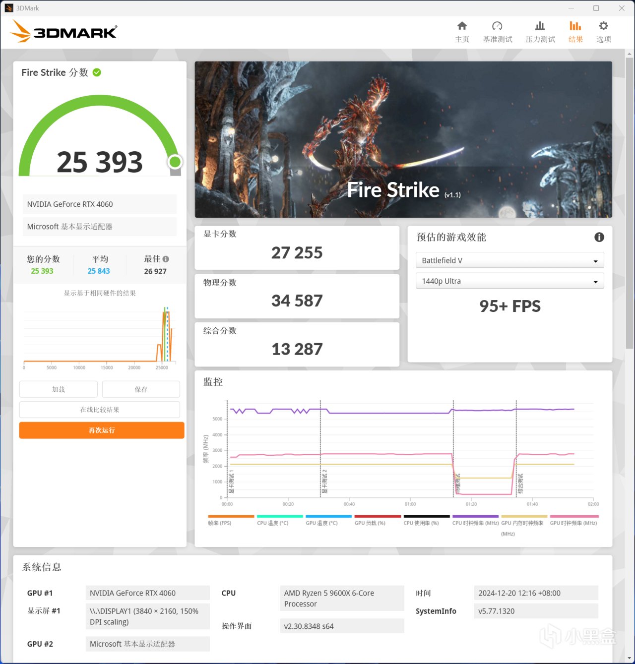 3DMark Fire Strike项目,显卡分数为27255,CPU物理分数为34587,表现和主流相同配置大差不差,稳妥了~