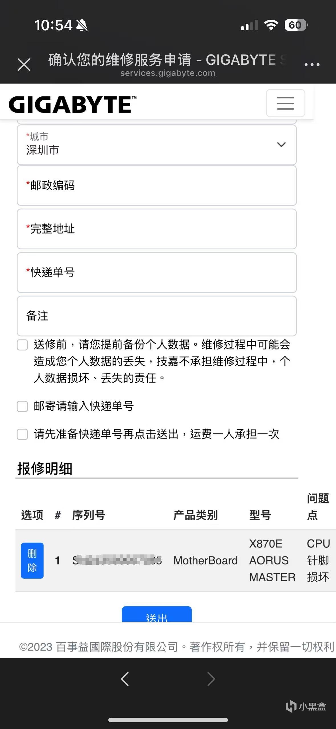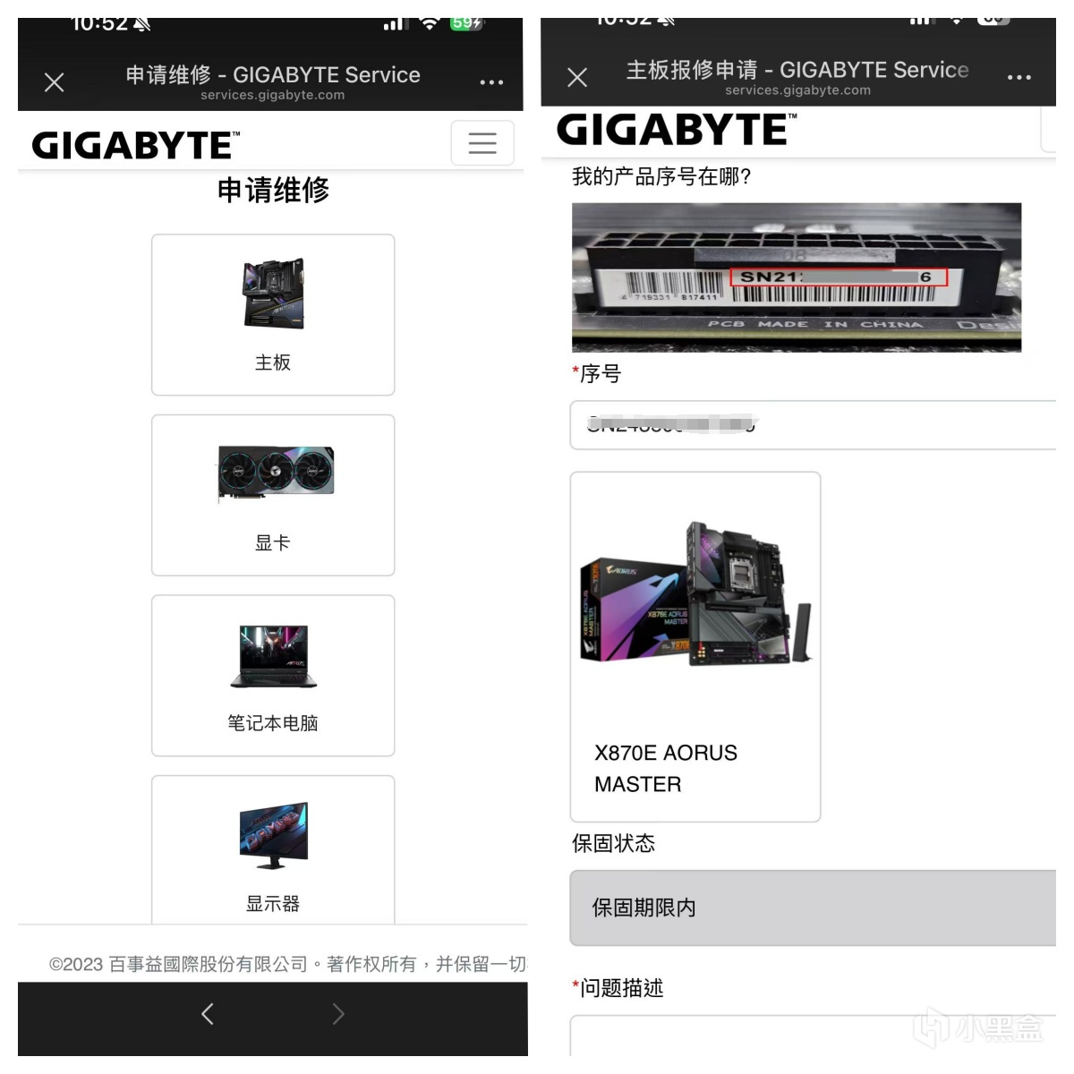 技嘉的售后流程个人体验下来还是十分流畅的,中间也没有类似要确认是否本人购买、购买渠道等情况,全程只提供了产品的SN码就可以走售后了,十分省事。技嘉这种一线硬件品牌的实力,除了产品质量够好,还很多体现在售后方面,毕竟意外的事情时有发生,换个售后差的牌子,说不定就搭进去好几千块了。