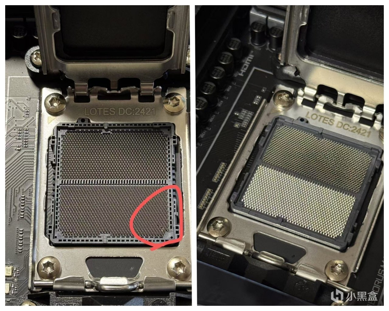 看着诱人的插槽我就把我的老媳妇按进去了,一通娴熟的装机操作后,点开电源键后,嗯?怎么不亮机。装机流程不可能错啊!! 一通排查,tmd超级雕竟然扛不住我的老媳妇,右下角的针脚竟然歪了几根,回忆装机的操作也不知道是哪里出问题。