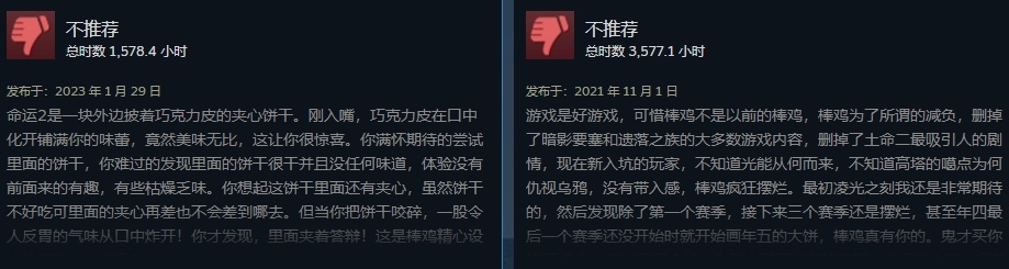 玩家表示《命運 2》這款遊戲對新手及其不友好,遊戲並不適合時間不充裕的玩家!另外官方棒雞的一些操作也讓玩家對遊戲產生了一些負面情緒: