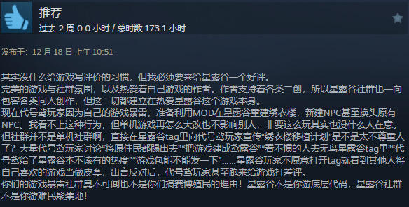 《星露穀物語》和《代號鳶》兩款遊戲之間的爭議起源於《代號鳶》玩家社區中的一些行爲。據報道,有傳聞稱《代號鳶》的玩家因爲與mod作者的衝突,開始衝擊《星露穀物語》玩家的社區。這一行爲導致了《星露穀物語》的Steam評測區出現了一些聲援式好評,玩家們指出《代號鳶》社羣公開宣傳換頭MOD,將鵜鶘鎮村民換頭成《代號鳶》角色,試圖“重建繡衣樓”的做法不合理。