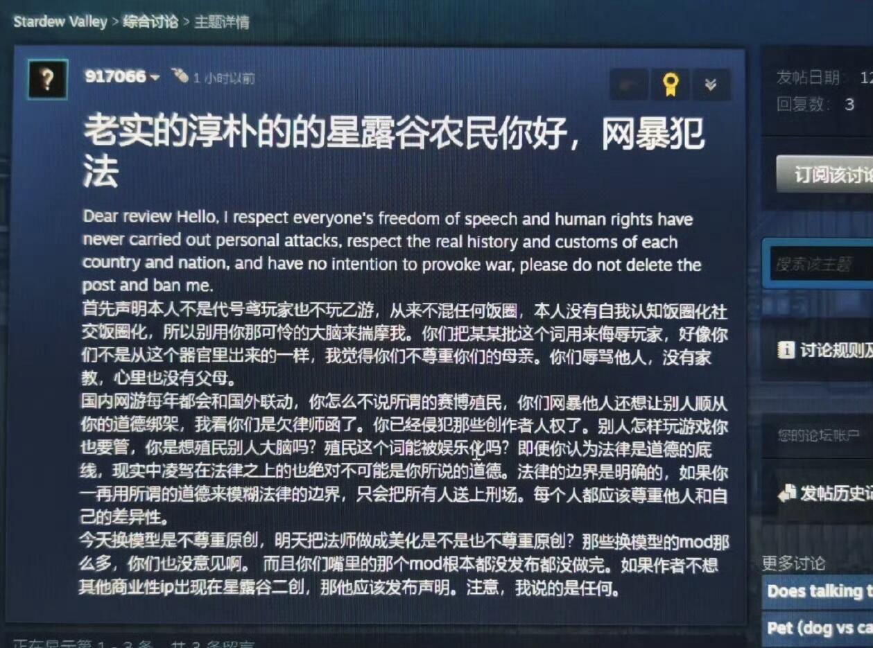 《星露穀物語》官方對此事件做出了回應,發佈了公告,但具體內容未在搜索結果中披露。不過,可以推測官方的公告可能是爲了平息爭議,維護遊戲社區的和諧。