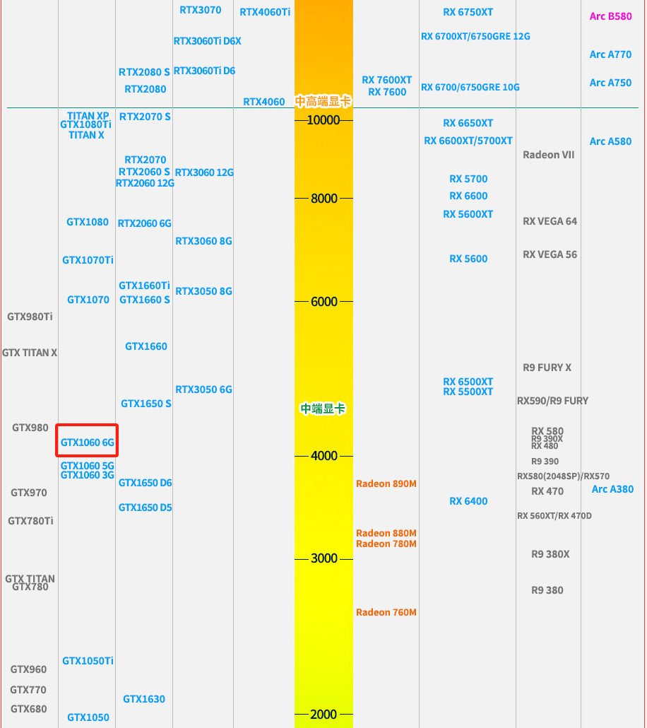 英特爾陣營:ARC A380(1080P遊戲)、ARC B580(1080P/2K遊戲)、ARC A770(2K遊戲)