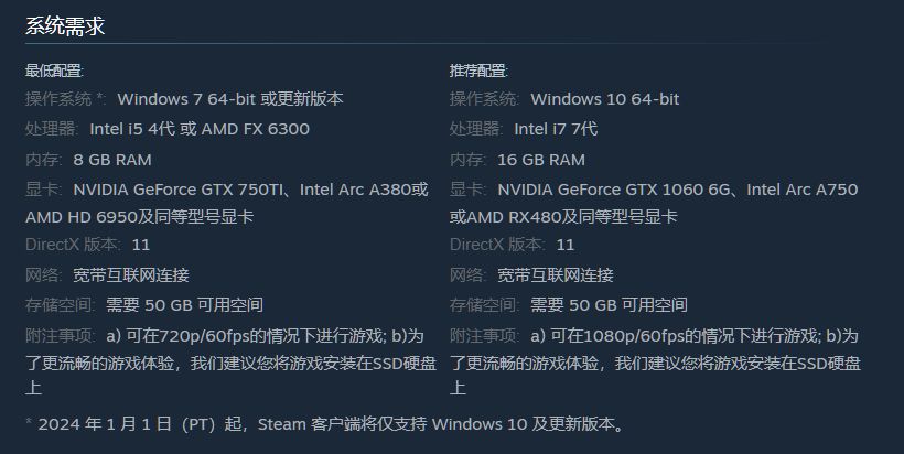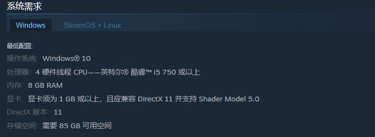 遊戲的配置要求可以前往去官網、或Steam的商店界面查看