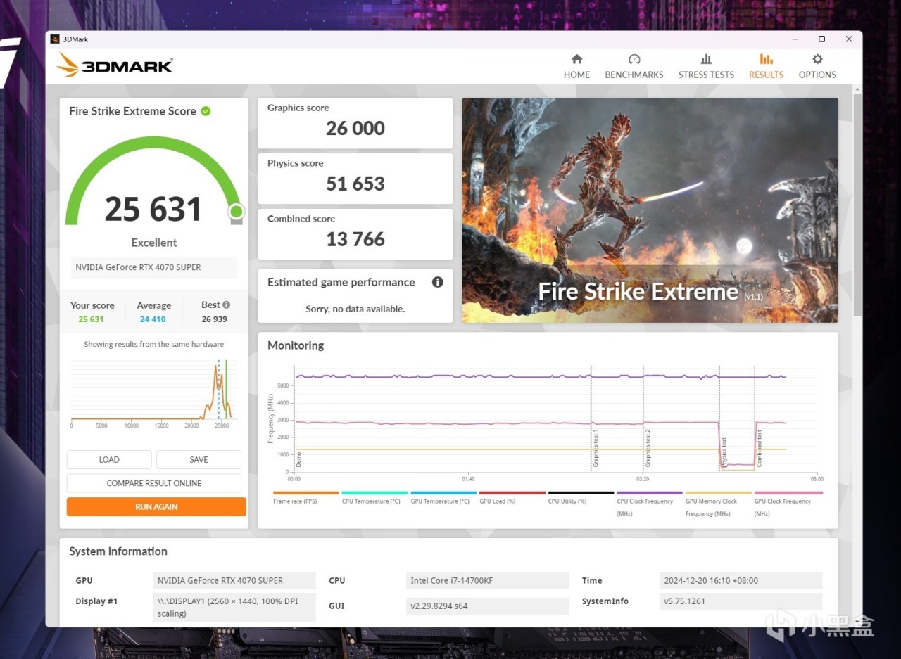 3DMARK FIRE STRIKE EXTREME,總分25621,其中圖形26000,物理分數51653,綜合分數14766。