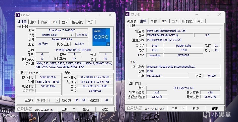 CPU-Z,誠不欺我也。CPU 14700KF,主板微星Z790MPOWER。
