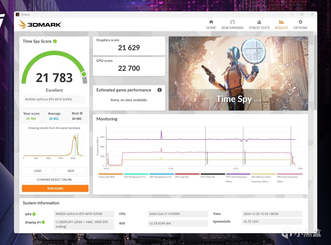 3DMARK TIME SPY,總分21783,其中圖形21629,CPU22700。
