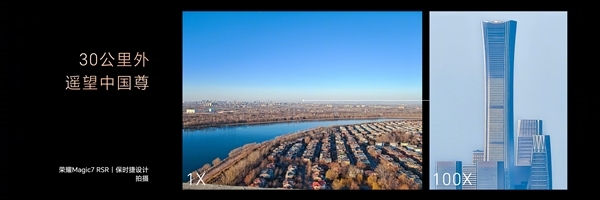 發佈會上,在講到榮耀Magic7 RSR保時捷設計的拍照緩解,他對比了華爲Mate 70 Pro+在100倍長焦之下的影像效果,稱“明顯碾壓友商”。