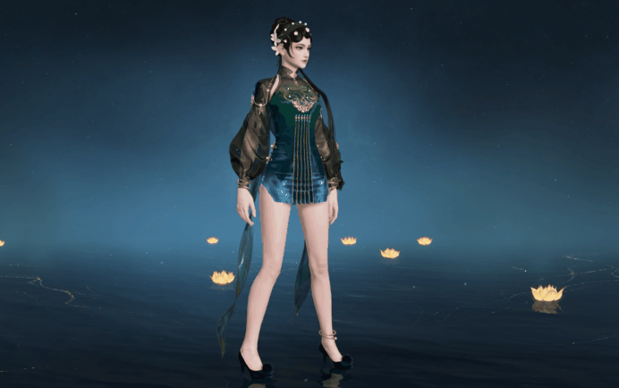 情爲何物,教人嗔狂,我只道這千年同行,難道是虛妄。碧波潮水皆暗藏裙襬,朦朧黑紗如墨雨掩青天,只用金紋蛇環綰起,襯得面容更爲姣好。