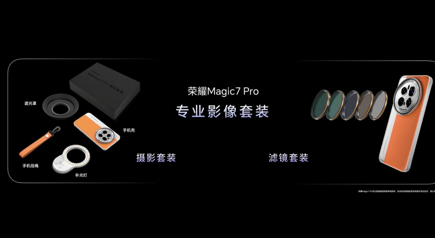 值得一提的是,榮耀Magic7 Pro系列提供了兩種配件套裝:攝影套裝和濾鏡套裝。