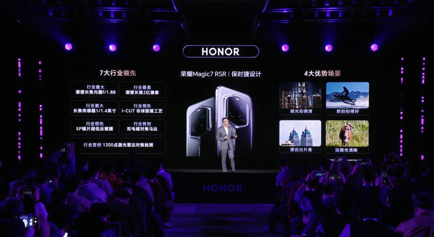 趙明表示,榮耀Magic7 RSR保時捷設計款擁有7大行業領先和4大優勢場景。同時,榮耀手機攝影計劃2025活動即將開啓。