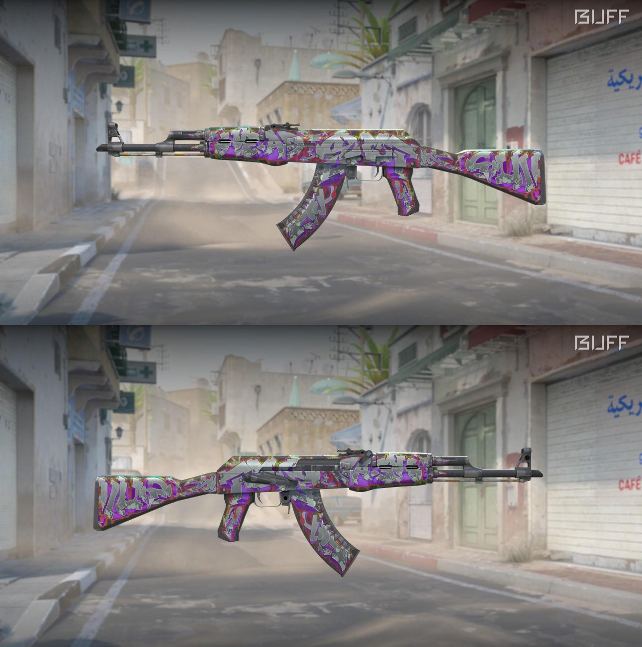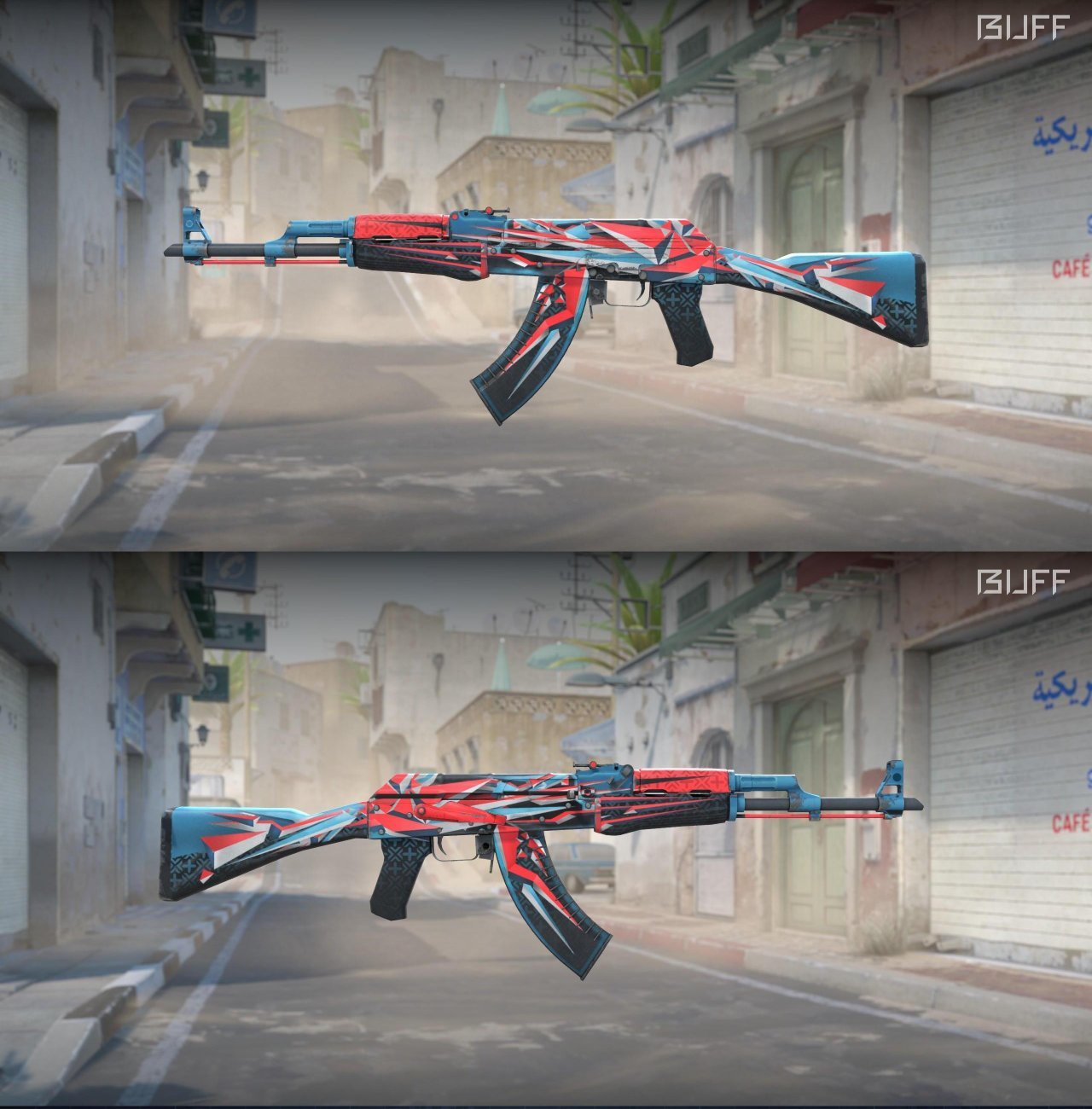 色彩搭配很丰富的一款皮肤,枪身上红蓝白的图案有一种很混乱的感觉,反而看起来更加耐看了,也更吸引人眼球,局内效果很好,比较吃磨损,刮花会有些严重,推荐略磨入手