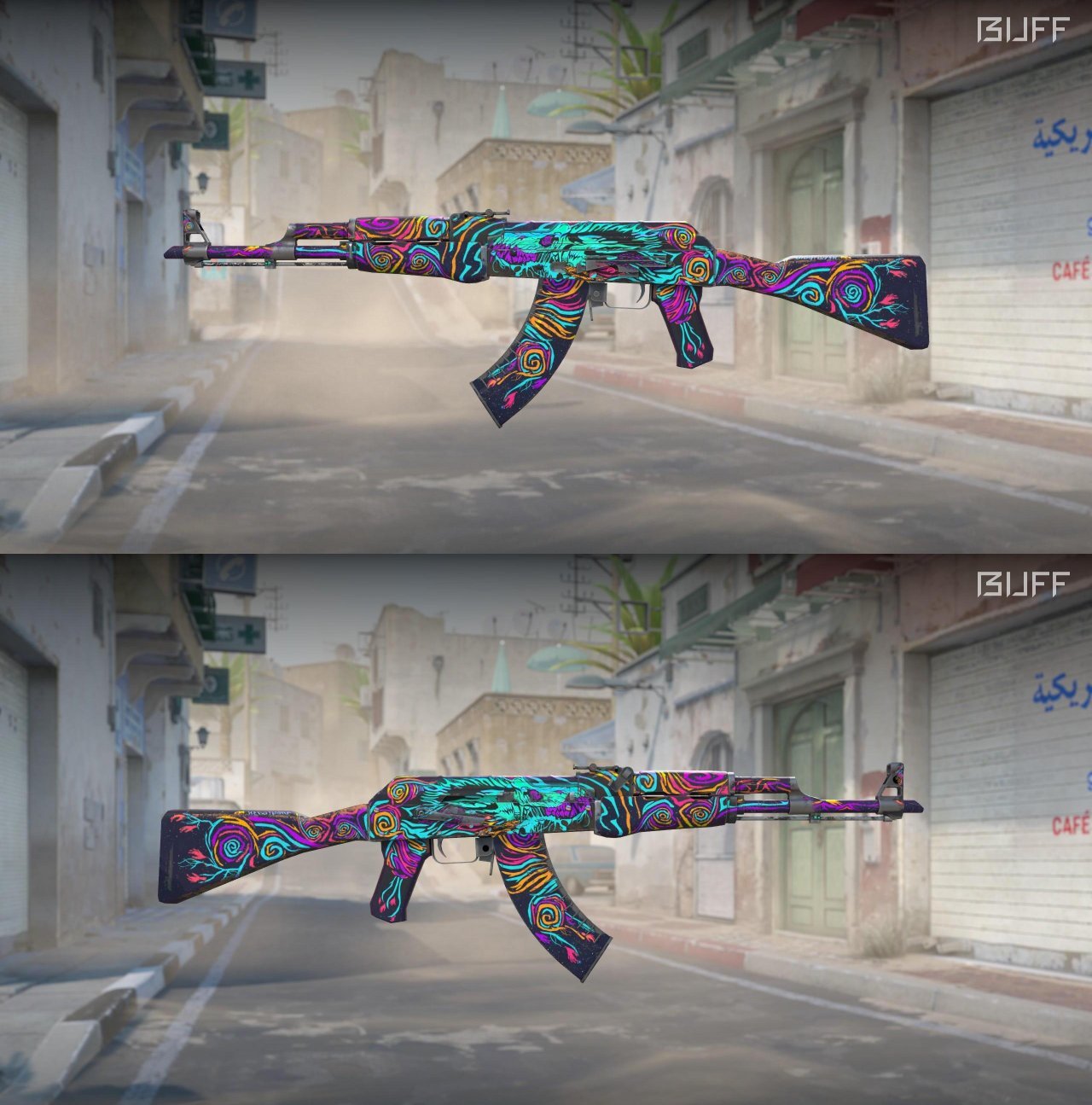 涂鸦风格的一款枪皮,色彩搭配很丰富,有一种光怪陆离的感觉,枪身上展现的内容更像是一场梦境,乃至梦魇,整体上颜值很不错,也很耐看,有一些吃磨损,推荐久经入手,暗金(129😱)