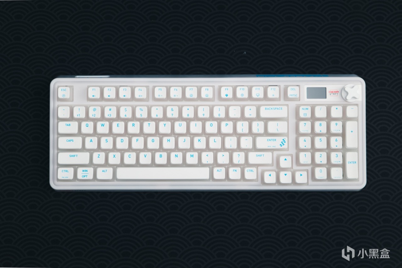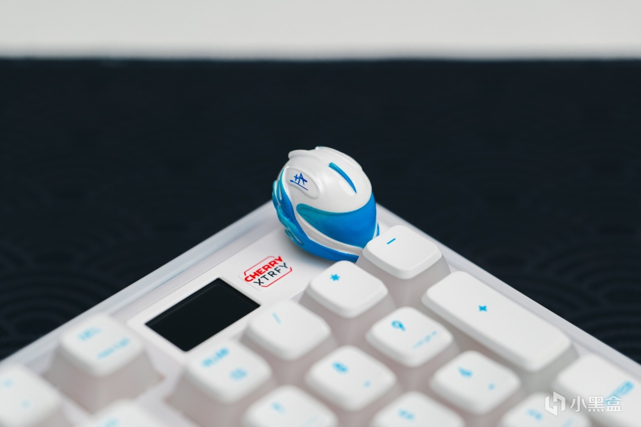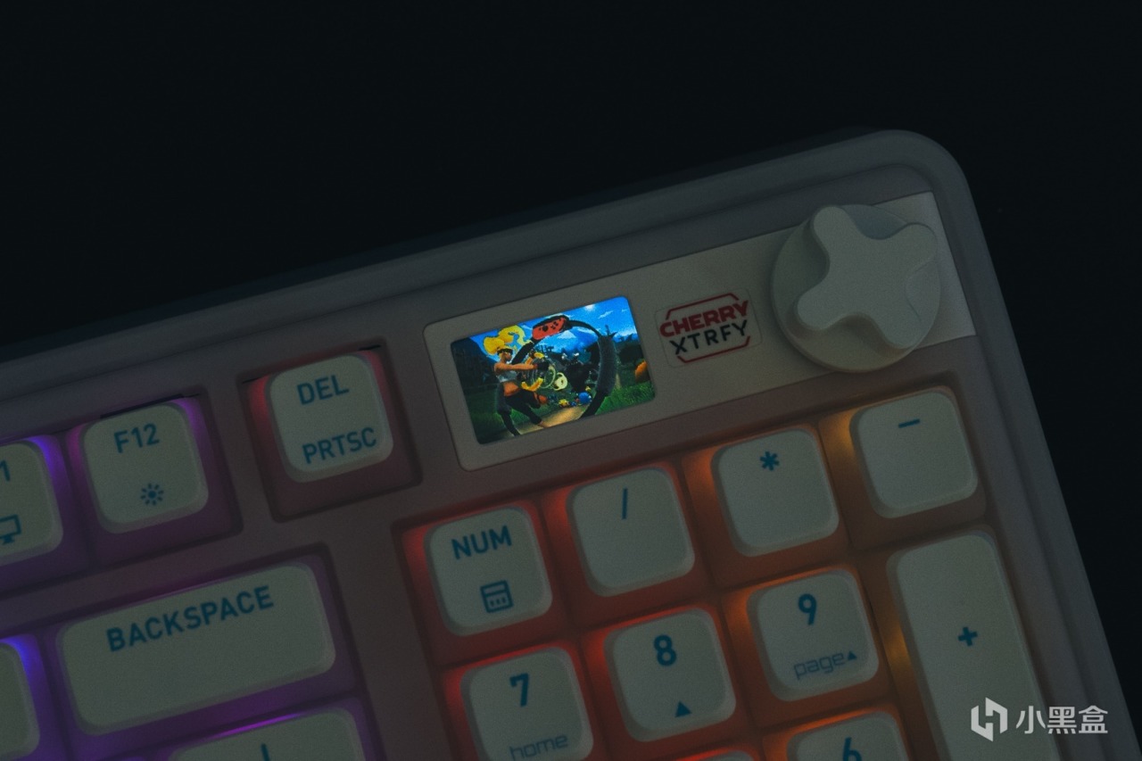 數字區上方採用的是和MX8.3一樣的全綵LCD顯示屏,搭配家族式X型金屬旋鈕,在旋鈕與屏幕之間還有CHERRY XTRFY的絲印logo。這個部分的飾板與邊框的銜接處有做圓弧過渡,使其看起來更加和諧。