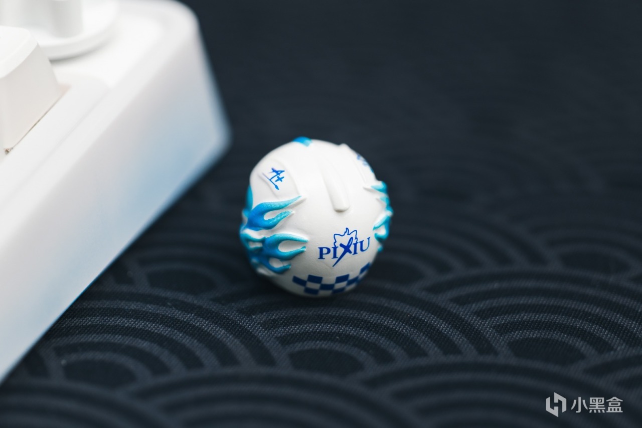 旋鈕依舊是可以替換的,參與PIXIU98的首發活動還會額外贈送定製的同配色3D賽車頭盔旋鈕。本次會跟隨鍵盤顏色來贈送相應的頭盔,黑色頭盔代表財運沖天,白色頭盔代表提分衝刺。