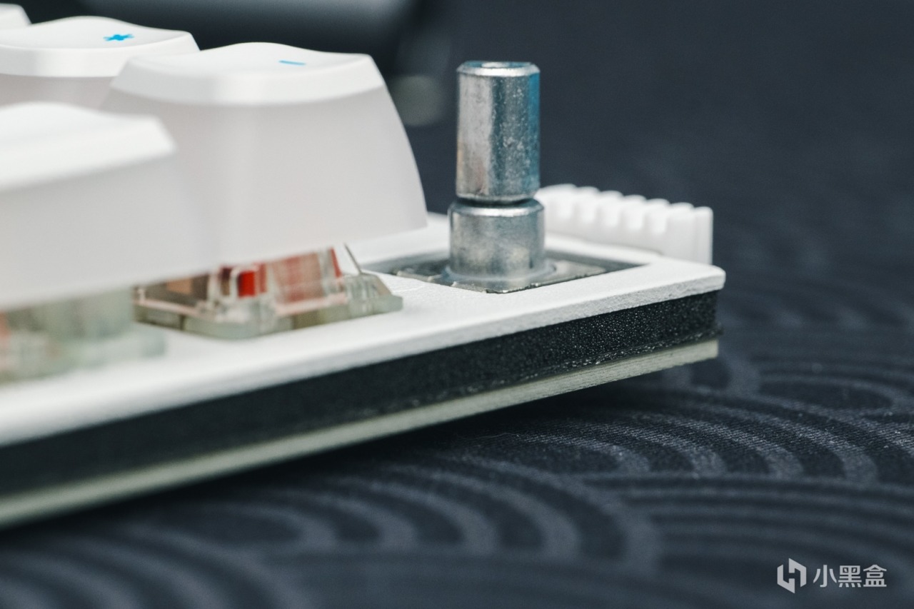定位板爲冷軋碳鋼板,整體鍵盤的手感偏硬。內部填充比較充足,在定位板和PCB之間有Poron棉、IXPE軸下墊、PET聲優墊。