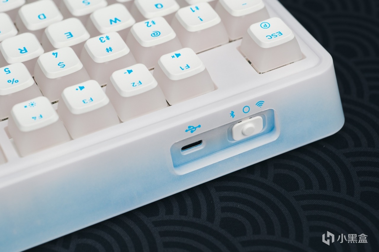 從下往上,PIXIU98的配色像是由藍色底殼到白色鍵帽頂部的顏色過度,高級感十足。