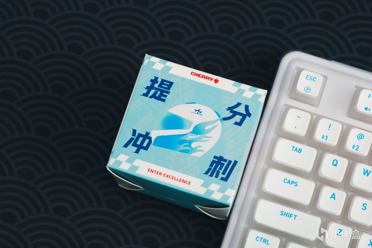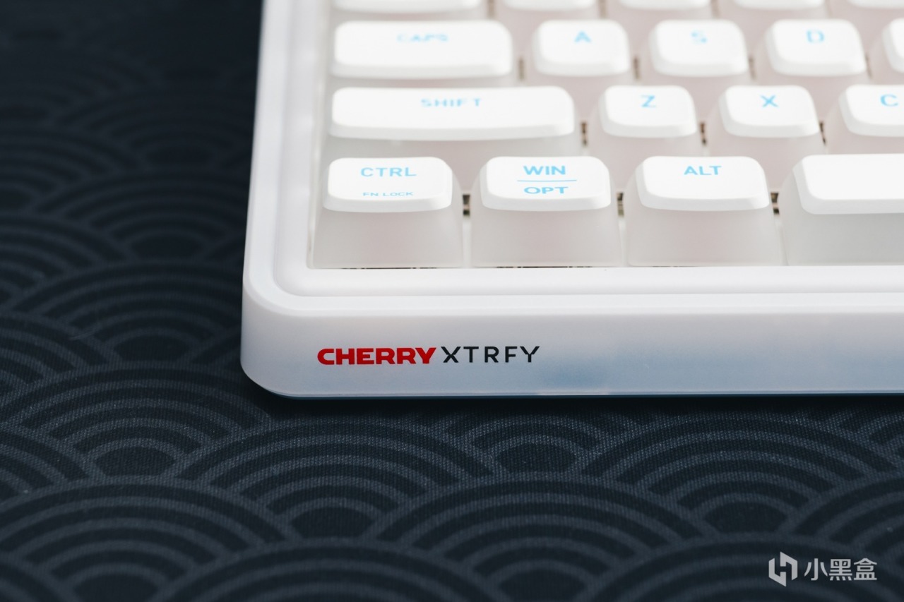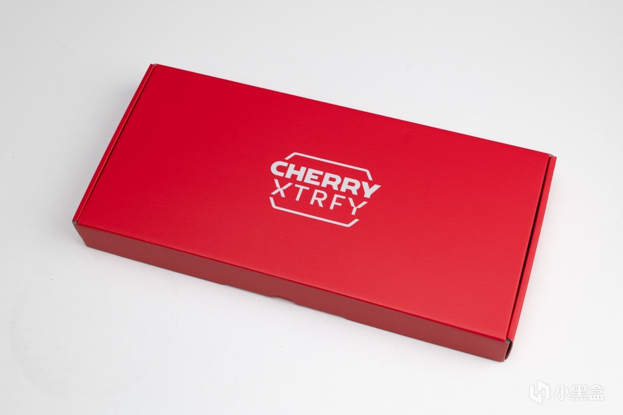 CHERRY從2023年起,新推出的鍵盤都是這樣的包裝風格。左上角是產品名稱,右上角是鍵盤的回報率,中間爲產品展示,最下方是CHERY XTRFY的logo.