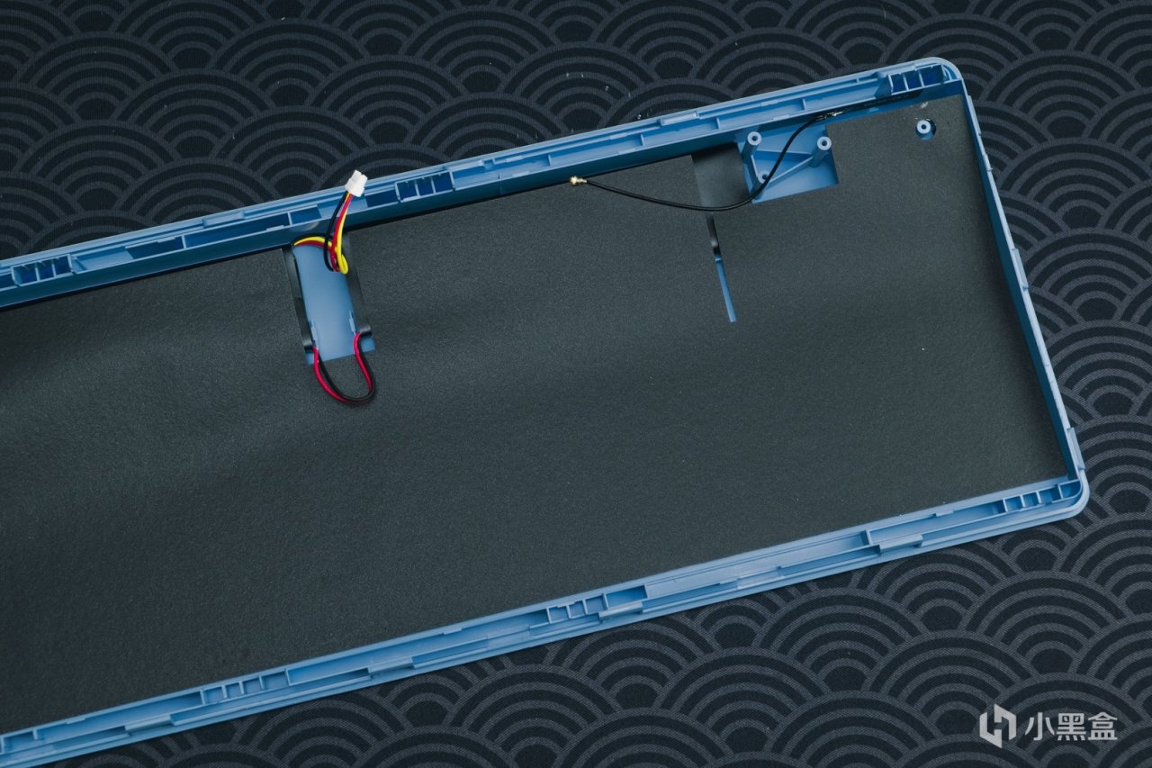 在底殼上還有一層吸音棉,在吸音棉的下方,還有兩塊粘貼在底殼的電池。