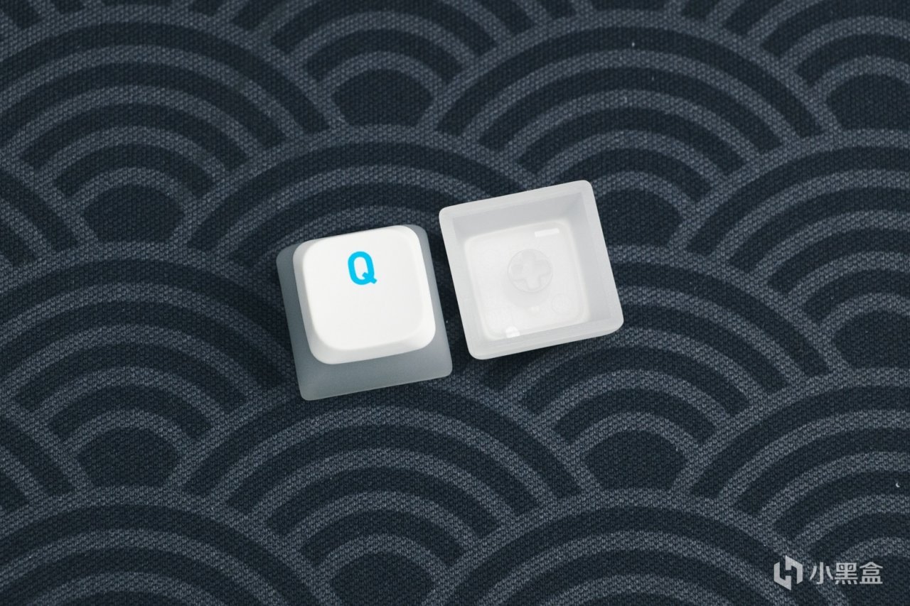 PIXIU98整體是分層漸變的撞色設計,外殼和鍵帽的透明程度不同,通過側面半透明的外殼隱約可以看到藍色的底殼。