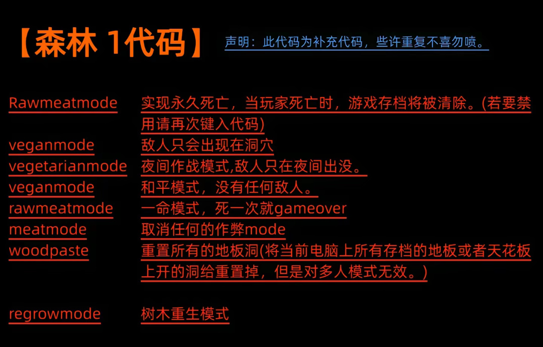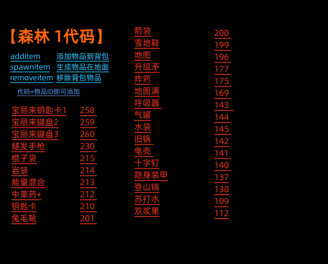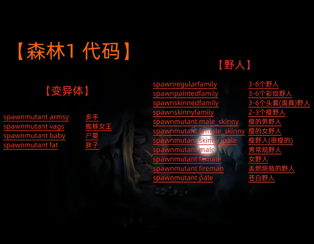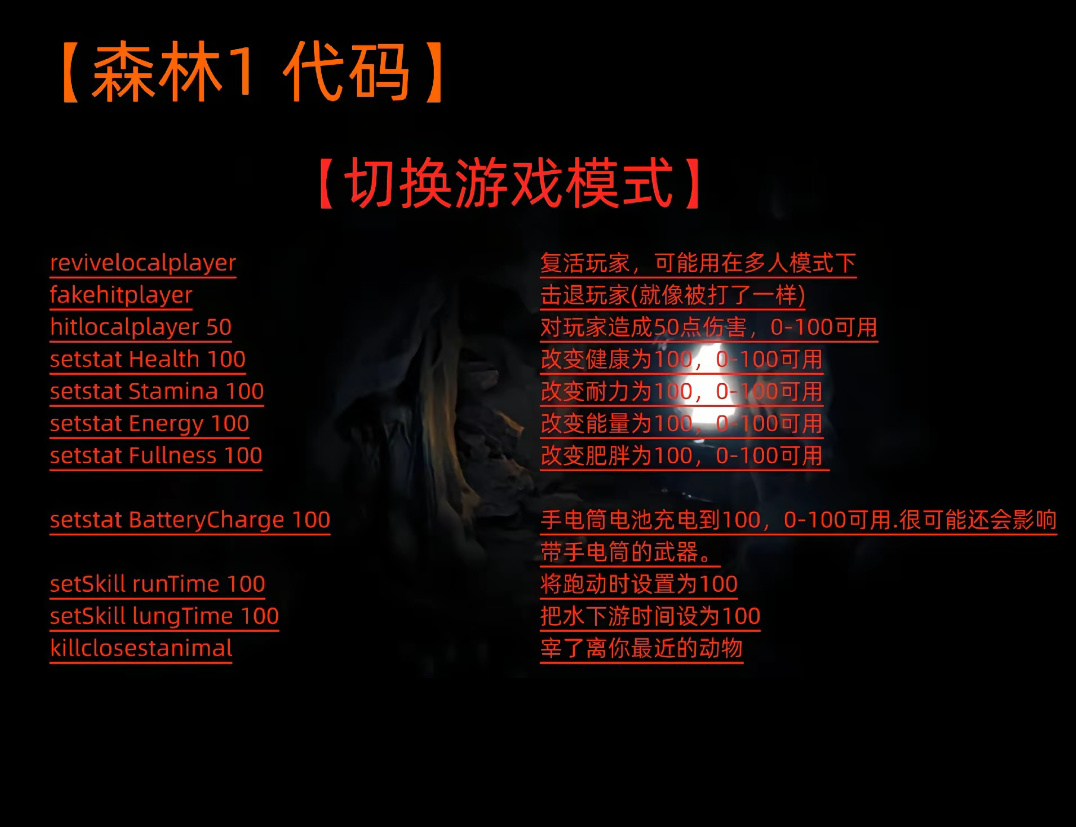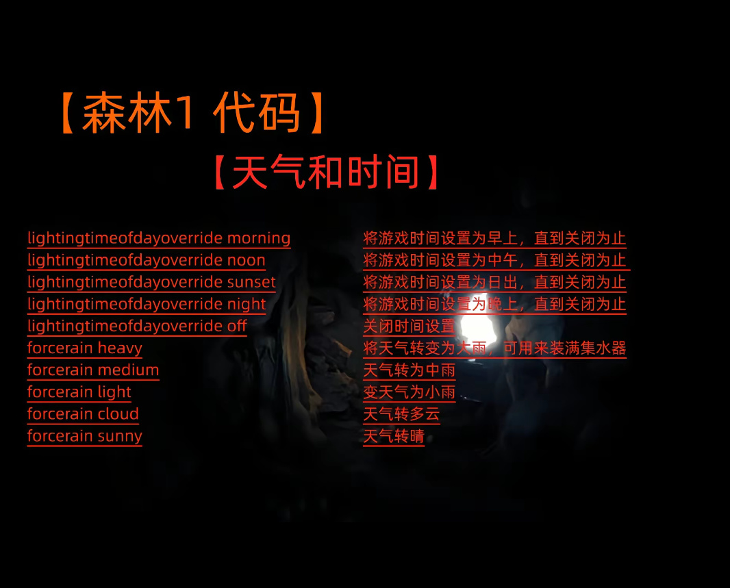 森林怎麼輸入作弊碼?許多小夥伴覺得森林這個遊戲難度太大了。其實森林有很多作弊碼幫助玩家降低難度。下面你白哥就帶來森林的作弊碼輸入方法與介紹。如圖