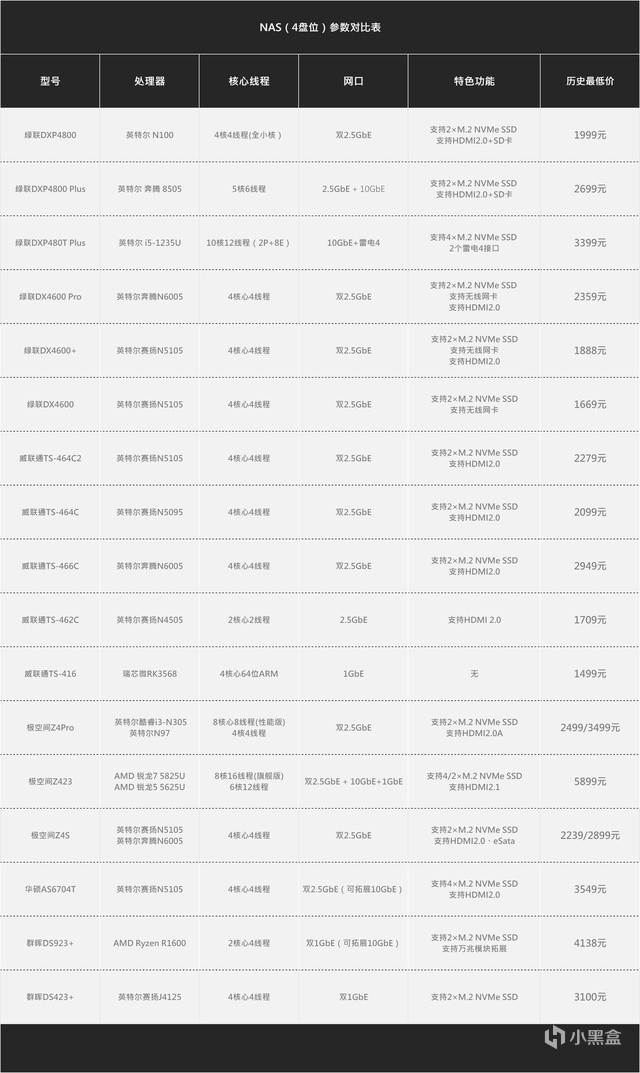 接下来只介绍几款非常值得购买的NAS,不值得买的都不介绍了。