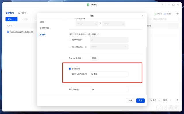 但是需要把这个DHT端口转发出去才可以下载PT,不然会没有速度的。