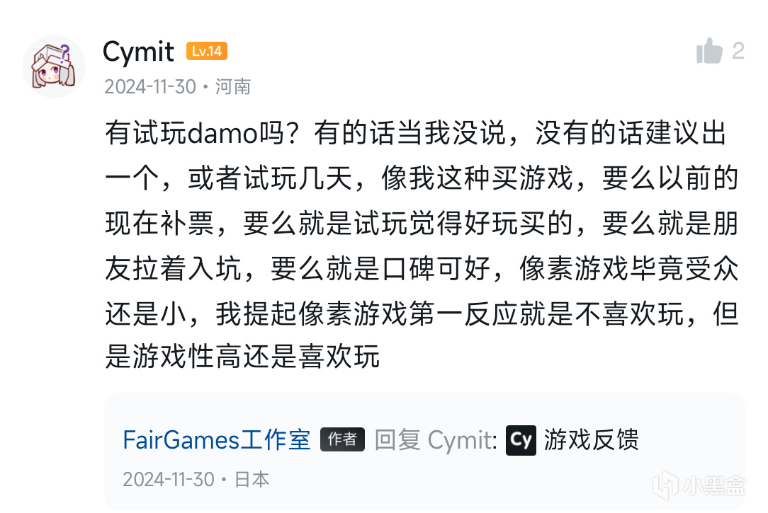 为了给大家一个解释,开发组亲自写了这个给黑盒社区的留言: