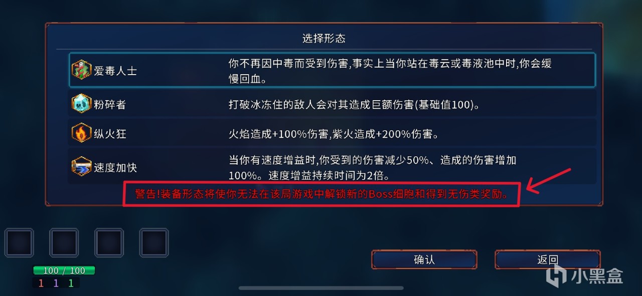 說一下我的習慣,就是我在做收集的時候一般會在實驗室那裏選擇一個形態變異,這樣清圖速度會大大提升。不過要注意就是,開了形態變異之後,即使打敗了BOSS“國王之手”,也不會掉落BOSS起源細胞。