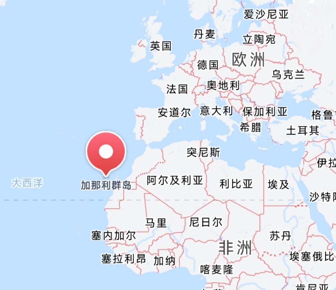 加那利羣島位於北大西洋中東部、非洲大陸的西北方向,距離非洲西海岸(摩洛哥)約 100 千米,離西班牙半島約 1300 千米。羣島分東、西兩個島羣,東部島羣包括蘭薩羅特島、富埃特文圖拉島及 6 個小島:西部島羣包括特內里費島、大加那利島、帕爾馬島、戈梅拉島和費羅島。加那利羣島是西班牙的海外自治區,總面積 7273 平方公里,在地理位置更靠近非洲,但在政治上屬於歐洲國家西班牙,總人口約200萬
