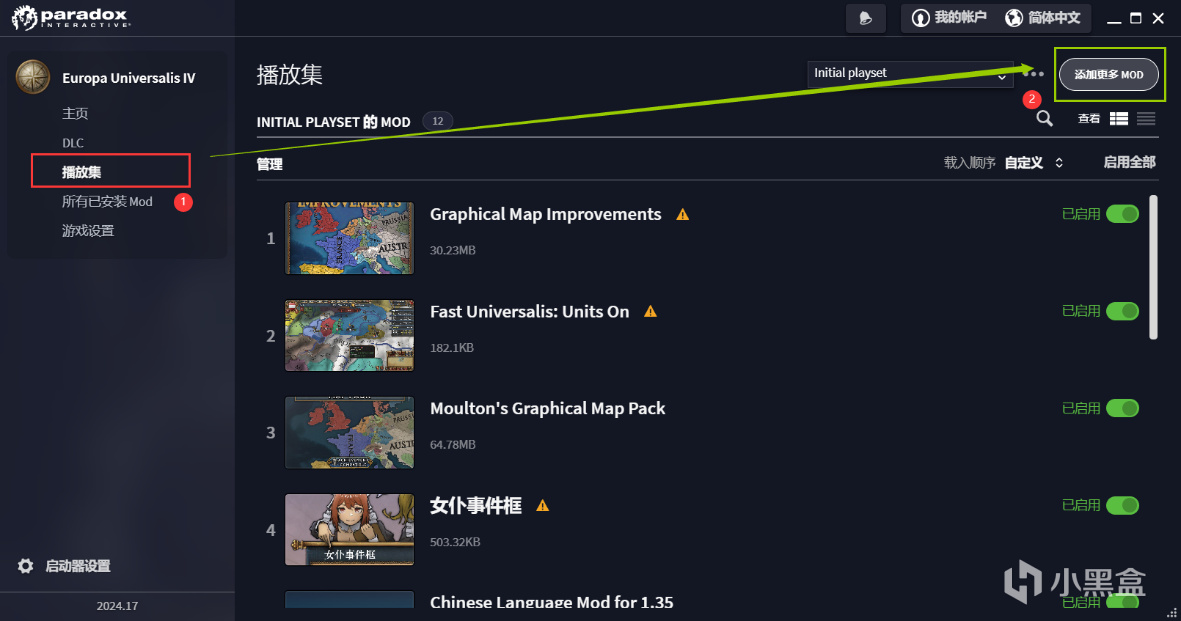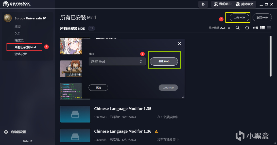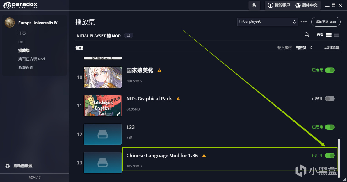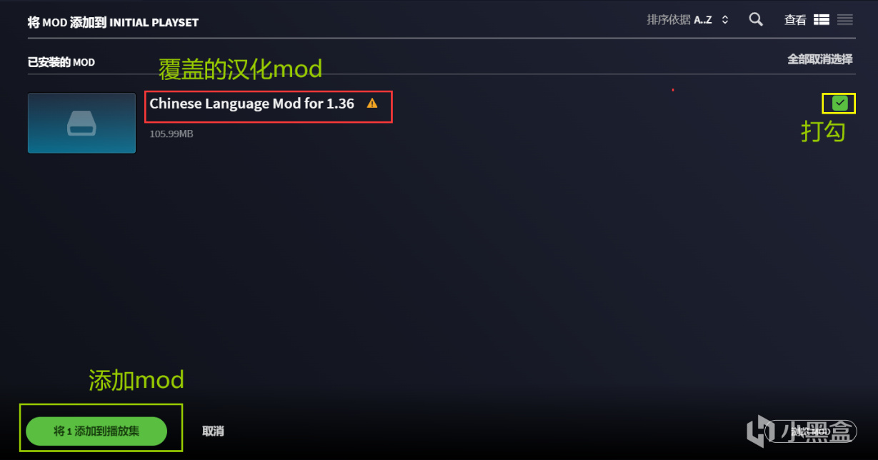 重新打開遊戲啓動器找到覆蓋的漢化mod(沒有識別到就再重新打開)