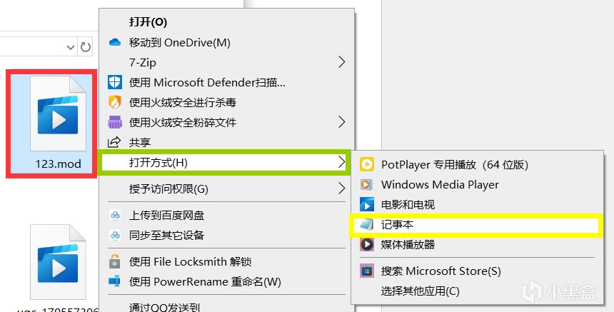 找到新建的.mod文件,鼠標右鍵在“打開方式”中用記事本打開文件