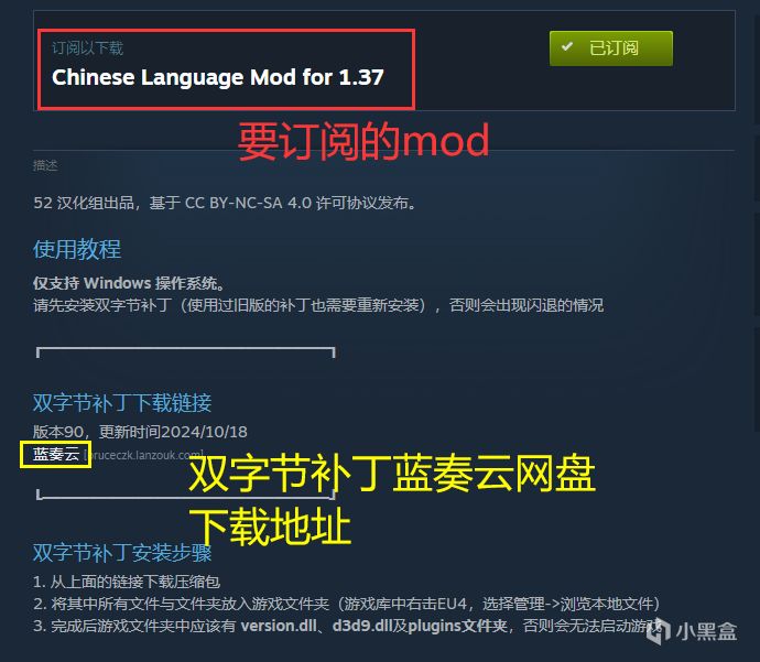 找到“Chinese Language Mod for 1.37”的mod,在簡介中有雙字節補丁的下載地址。