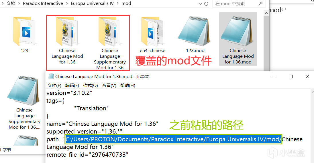 將解壓的漢化mod覆蓋到該文件夾中,粘貼路徑