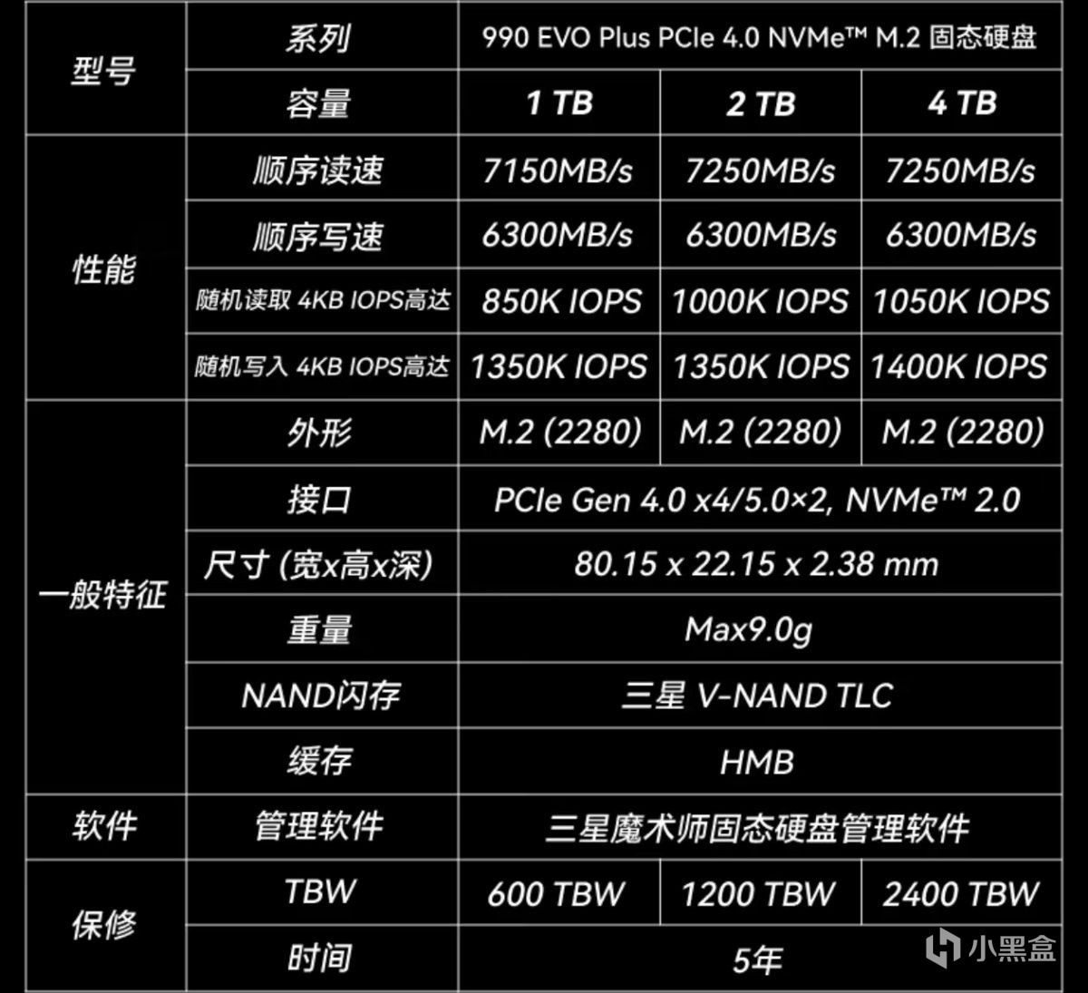 具体参数如下图,依旧提供五年质保,三星固态发热量较大,不建议笔记本用户使用。