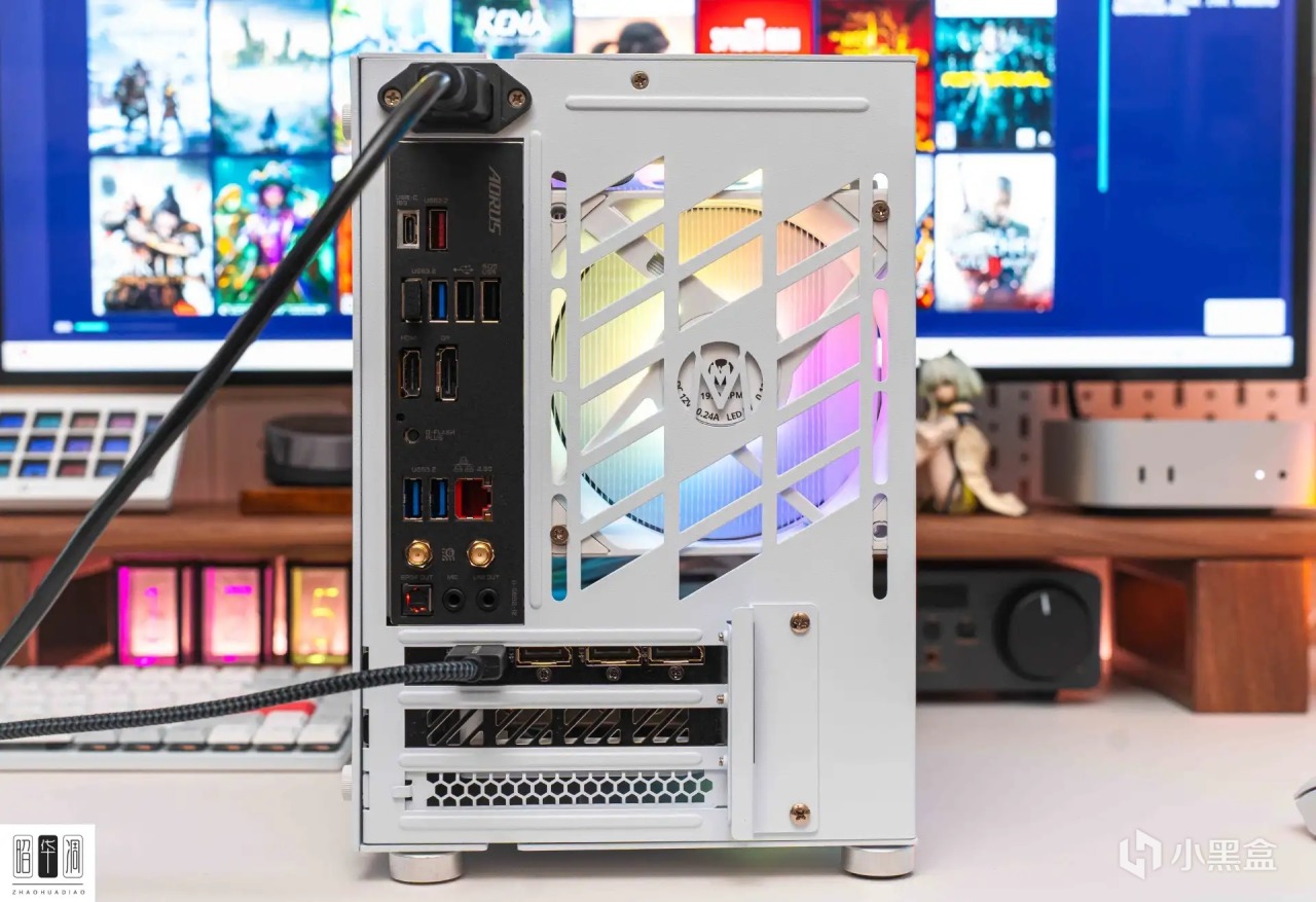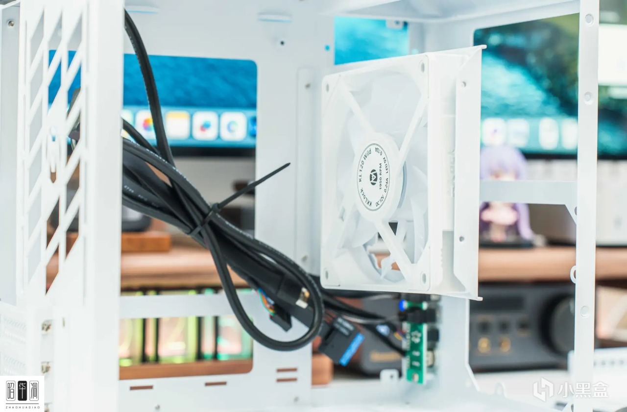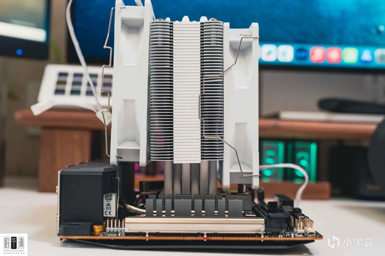 ▼需要注意的是,技嘉 B760I 主板的散热模块过高,和风扇有点抵触,解决的方案要嘛拆掉散热,要嘛使用单风扇。考虑到处理器并非 14 代电老虎,所以仅仅使用单风扇进行散热,正好风扇顶端的显示屏还可以遮住这里。