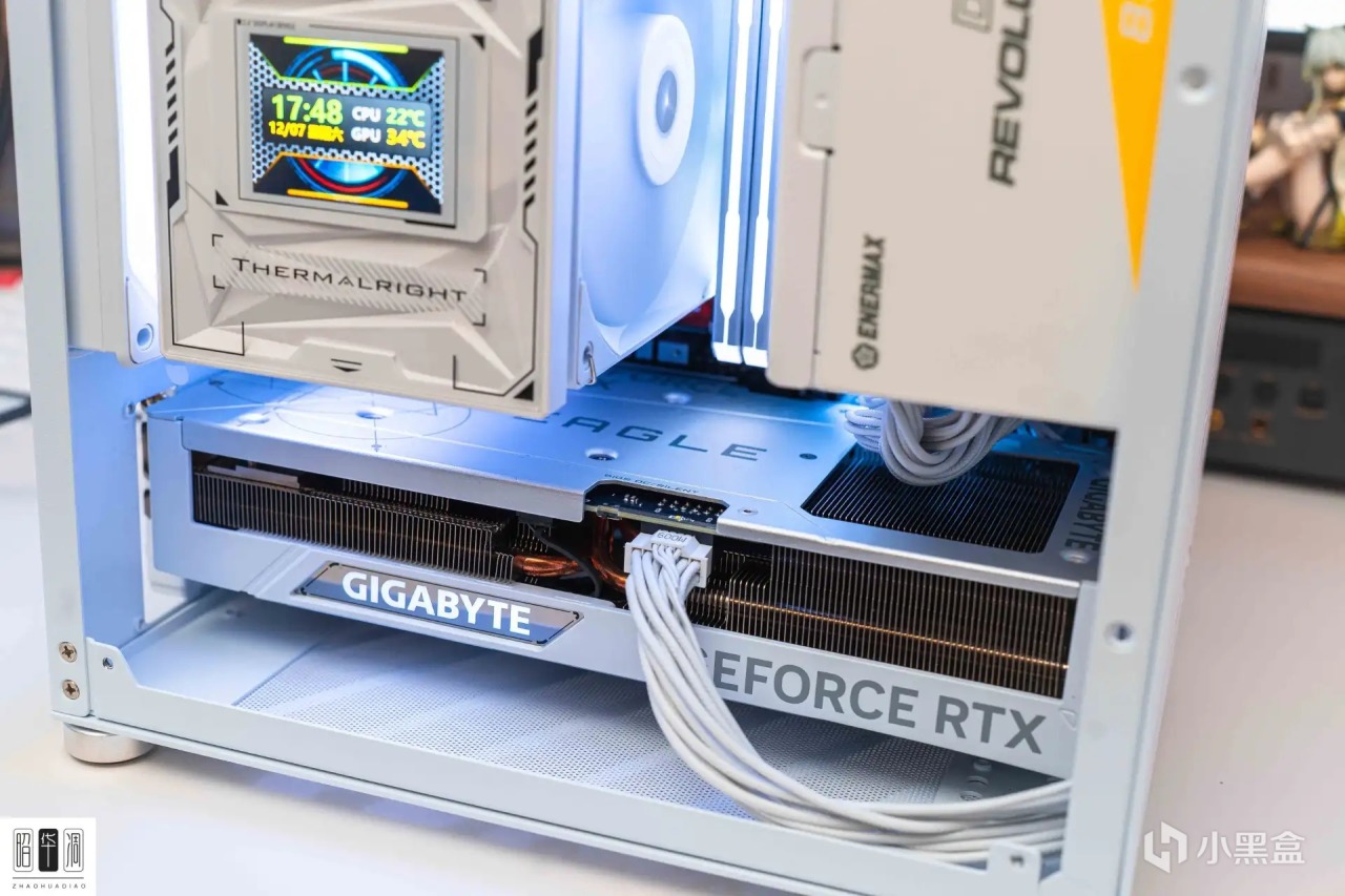 ▼显卡方面搭配的是技嘉冰猎鹰 4070 Ti SUPER,它也是 RTX 4070 系列唯 一 拥有16GB 显存的显卡,冰猎鹰在技嘉的显卡阵营也只能算是中端。优势是仍旧提供了 4 年质保服务以及支持个人送保,此外这款显卡的体积较为紧凑,且在技嘉产品系列中较为少见地采用了纯白色设计。