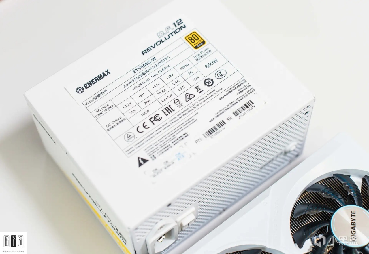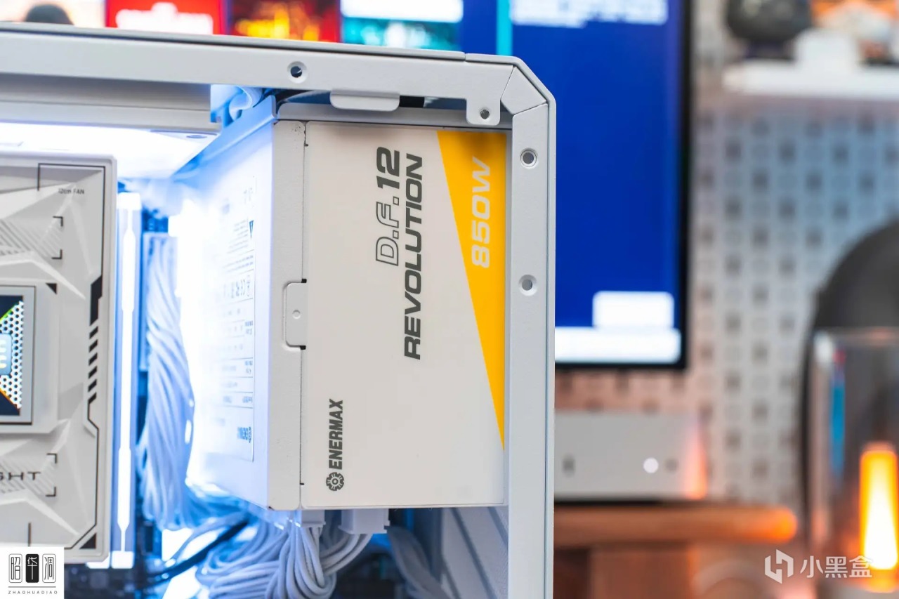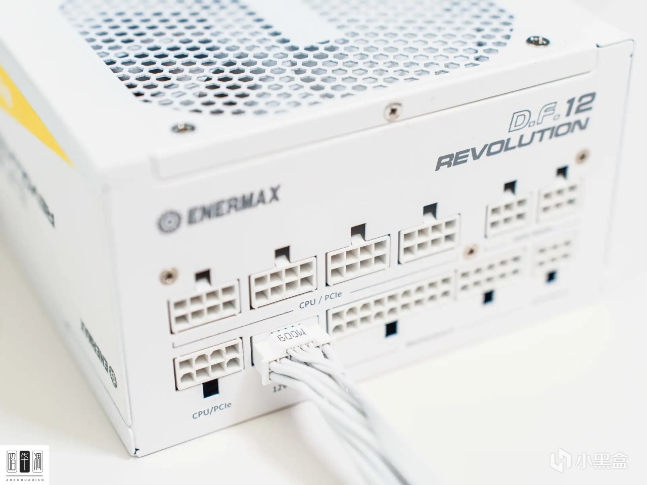 ▼电源是安耐美 Revolution D.F.12,这也是最近装机经常出镜的硬件了。122cm 短机身设计,当下最紧凑 ATX 电源之一,80 plus 金牌认证、支持 ATX3.1 标准、原生 PCle5.1 接口,电源采用主动式 FPC 结构,全日系电容也称得上堆料;235% 瞬时峰值功率、50% 的高负载状态转化率>91%,无限接近白金标准。
