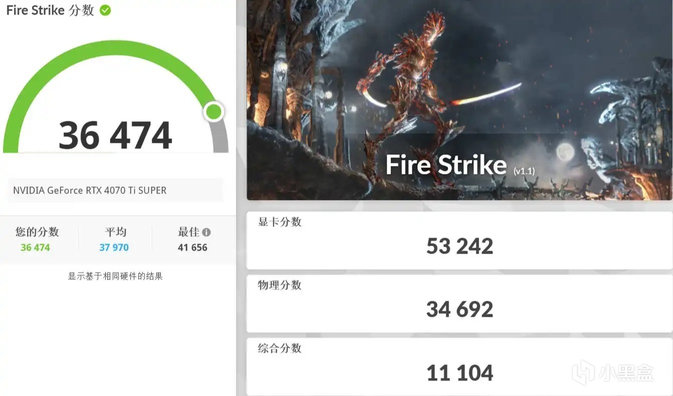 ▼3D Mark Fire Strike,这是一项适用于高性能游戏电脑和超频系统的 DirectX 11 基准测试,其统 一 的打分机制对于不同设备的性能比较很有参考。实测下来整机总得分为 36374分,其中显卡分数 53242分,物理分数 34692分,综合得分 11104。