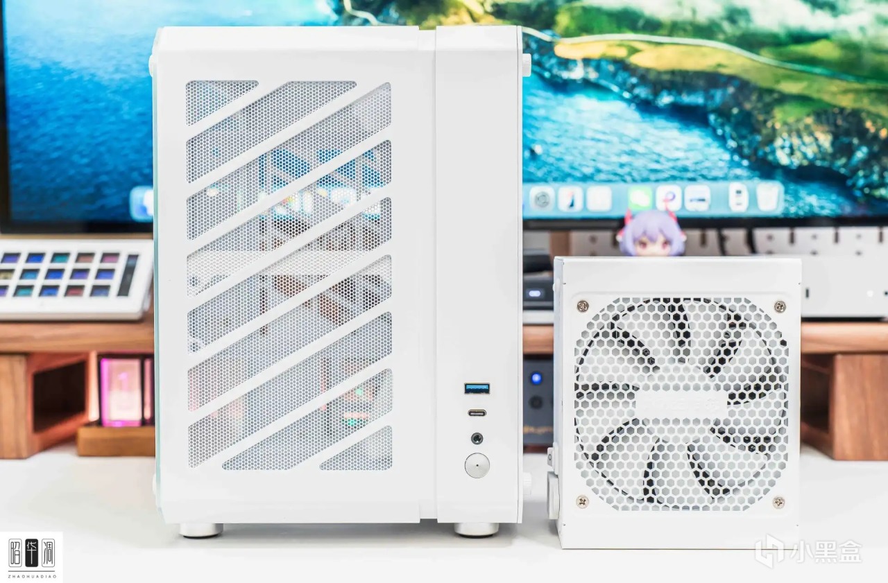 ▼机箱支持 140mm ATX 以下电源,如果使用 SFX 电源的话,显卡前端还能放置个 8cm 风扇。这里搭配是安耐美 REVOLUTION D.F.12 850W 电源,122mm 的机身长度,ATX3.1 + 原生 PCle5.1 标准,能够适配大部分的小型机箱和主流硬件,关键是价格比 SFX 电源划算的多。