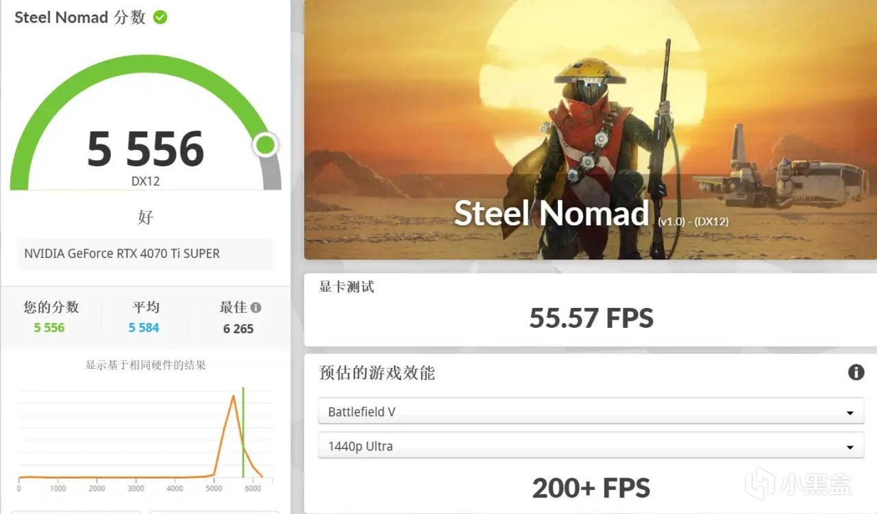 ▼Steel Nomad 主打跨平台测试,也因为不支持光追效果,比较容易判断处理器对显卡的制约程度,实测下来得分 5556分