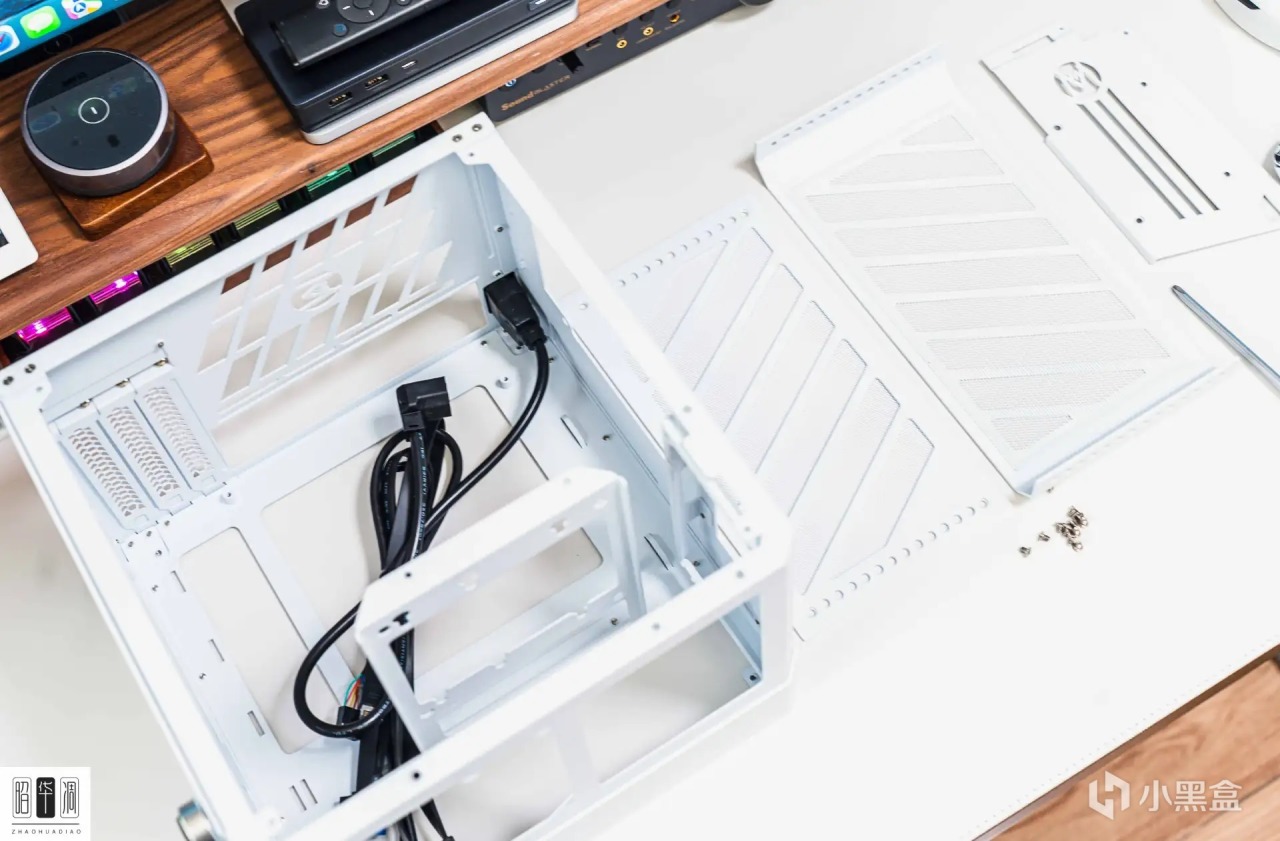 ▼机箱灵活度极高,除了基本框架,大部分面板都是可拆式组合。机箱正面下方有个风扇位,根据不同硬件支持不同尺寸,搭配 SFX 电源可以容纳 12cm 风扇,不过搭配三风扇显卡这里可以无视了。