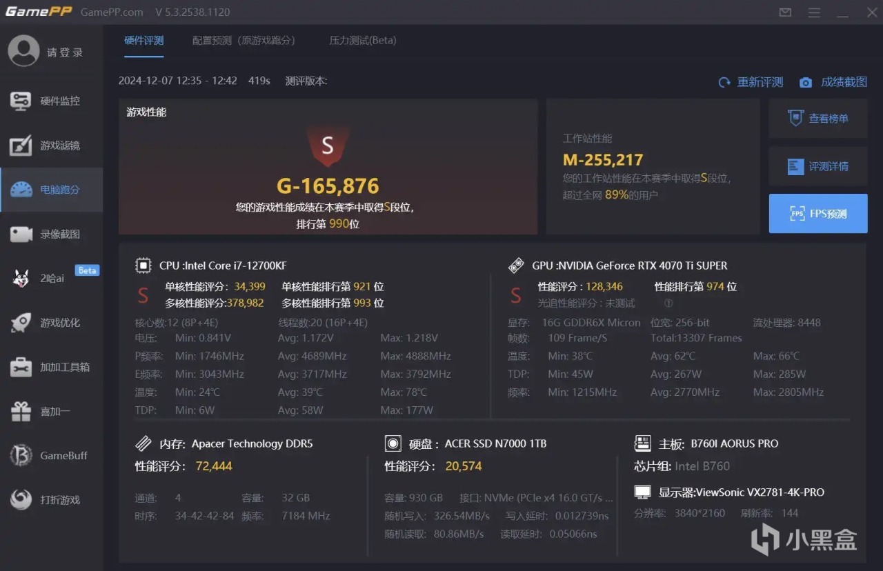 这块 12700KF 上市时间不短了,各项性能大家应该都挺熟悉的,这里就重点试试搭配 RTX 4070 Ti SUPER 在游戏方面的表现。
