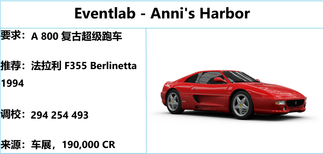 季节赛常用的法拉利 F355,很沉稳、比较好控车,转向略微有点硬。