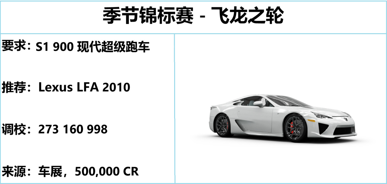 很久没用的雷克萨斯 LFA,大马力且加速快,前中后段都能有不错表现,但前下压力略低,车头容易晃动,倒转时注意控车。